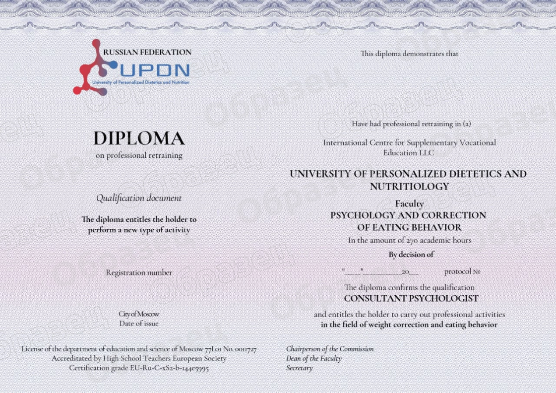 2018 г - Профессиональная переподготовка по специальности «Диетология»